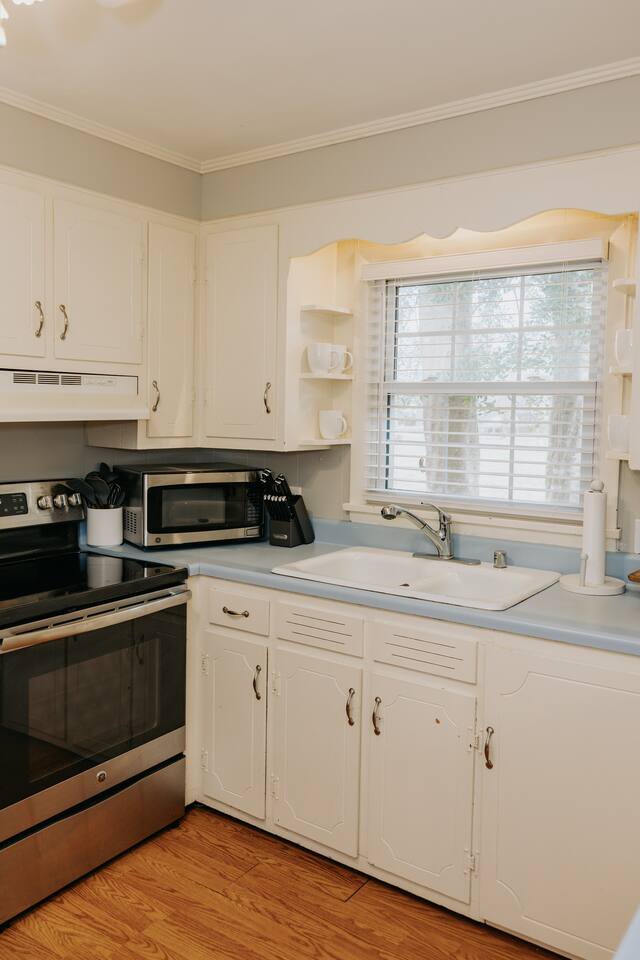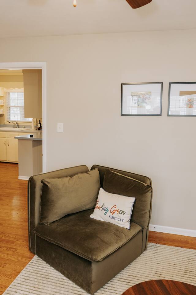 Welcome to your cozy Bluegrass retreat - a perfect blend of comfort, convivence and Kentucky Charm. Here you will be steps from coffee shops, boutiques, grocery shopping, and local eats. The home is fully quipped to cook a feast or get take out at a local restaurant seconds down the road. Take a 5 minute drive to experience family fun or fast cars for the car enthusiast at Beech Bend Amusement & Splash Lagoon. Available for Long or Short term stays!